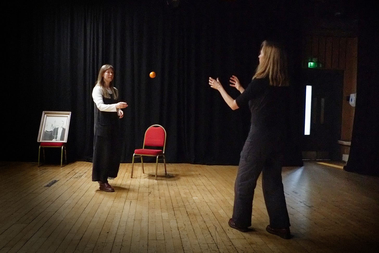 Throwing an orange between us whilst I recited my lines had a transformative effect on the piece. I was no longer self-consciously directing my “performance” but became more connected to the content of what I was saying, as I focused on catching and throwing the orange. I felt the piece become so much more alive. Maybe it was the threat of dropping the orange, or the stakes feeling somewhat raised, or that the orange became a conversation piece. The throwing of the orange became synonymous with the intention behind our conversation. Like I was throwing my points across to Stéphanie as she was non-verbally responding to me. It also made the monologue become a duologue - even though I was the only character speaking. This feeling of speaking directly with someone else stayed with me and will continue to do so. It physically engaged me, kept my energy up and brought an aliveness to what I was saying.
